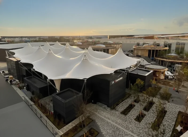 万博で世界とつながった建物が、未来を担う子どもたちの「学びの場」となる、詩的な循環です。また、基礎コンクリートブロックは兵庫県のネスタリゾート神戸で再利用され、膜屋根は大阪の地元企業によりバッグや小物へとアップサイクルされます。
