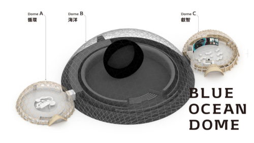 BLUE OCEAN DOME | カーボンファイバーを骨組みに使用した、分解・運搬が容易な建物。設計者である坂茂氏が設計を担います。 | モルディブ(リゾート施設/サステナブルな観光・海洋教育拠点として再活用) |